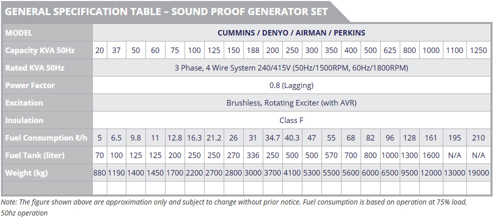 We invested in the well-known quality generator sets such as Cummins, Airman, and Denyo generator sets, with our professional tweak to improve the quality and performance of the generator sets. We are confident that our quality generator sets could meet all of our clients’ requirement.
